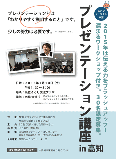 『プレゼンテーション講座in高知』西脇資哲氏【満員御礼】
