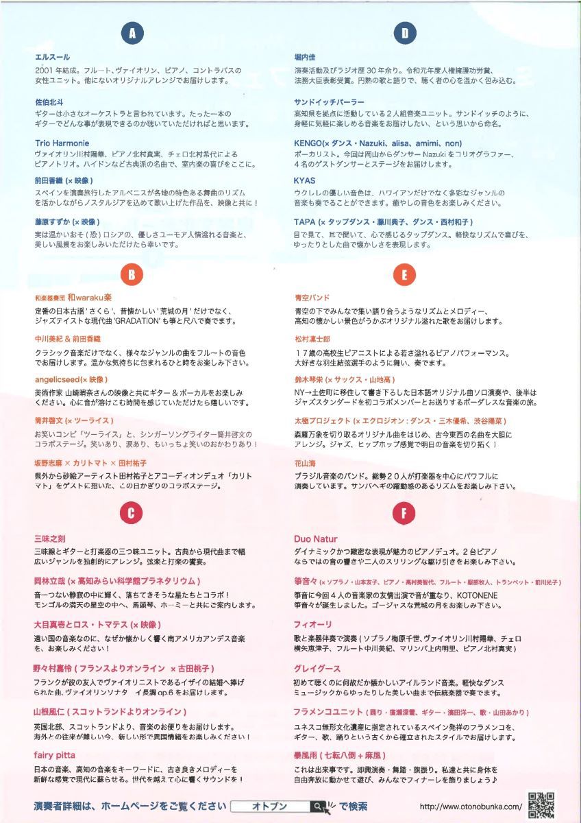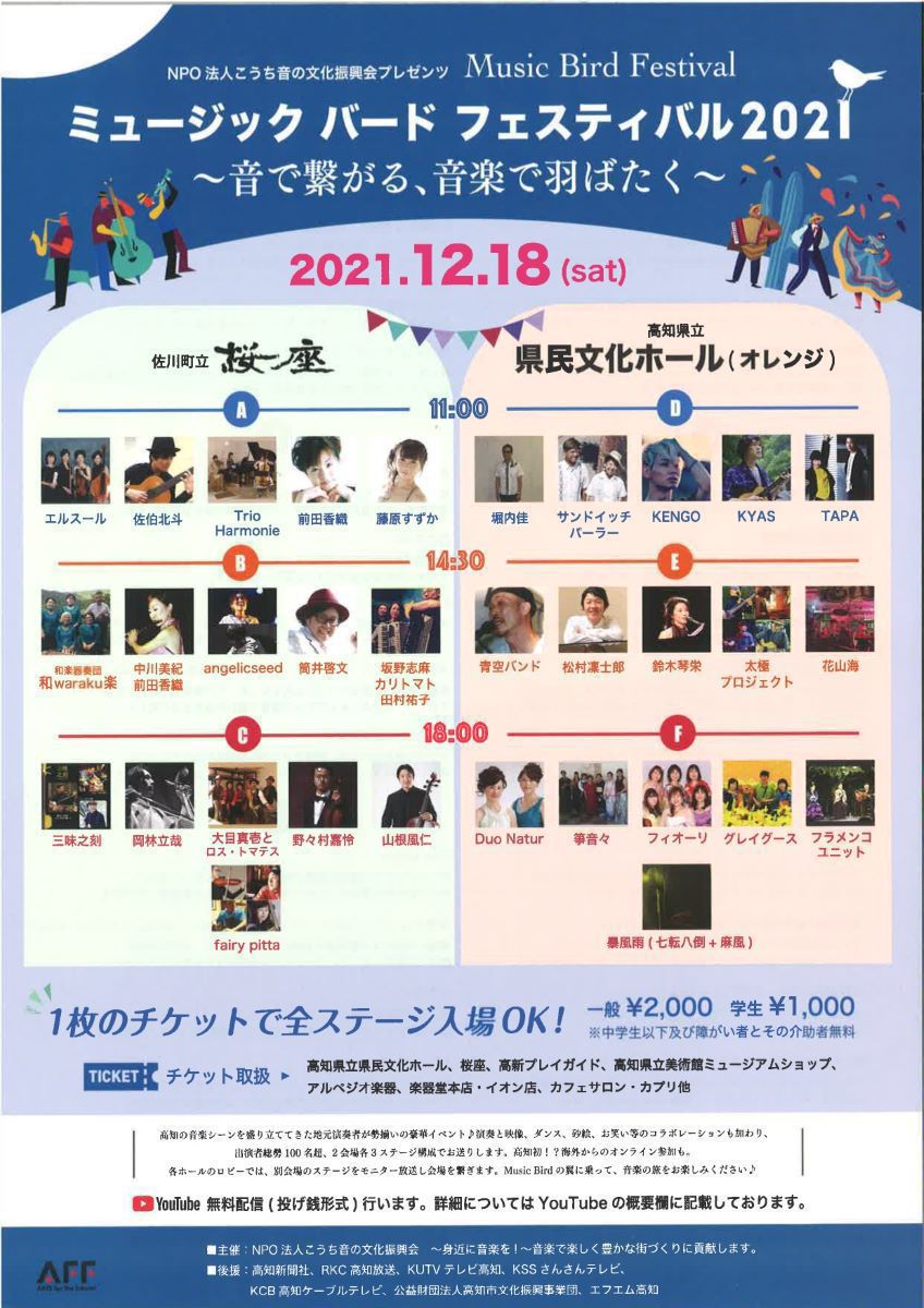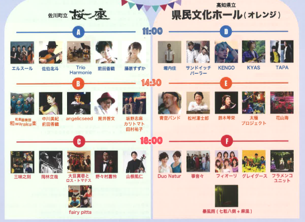 高知の音楽シーンをなり立ててきた地元演奏者が勢ぞろいの豪華イベント♪ 演奏とダンス、砂絵、お笑い等のコラボレーションも加わり、出演者総勢100名超、2会場各3ステージ構成でお送りします。高知発!?海外からのオンライン参加も。