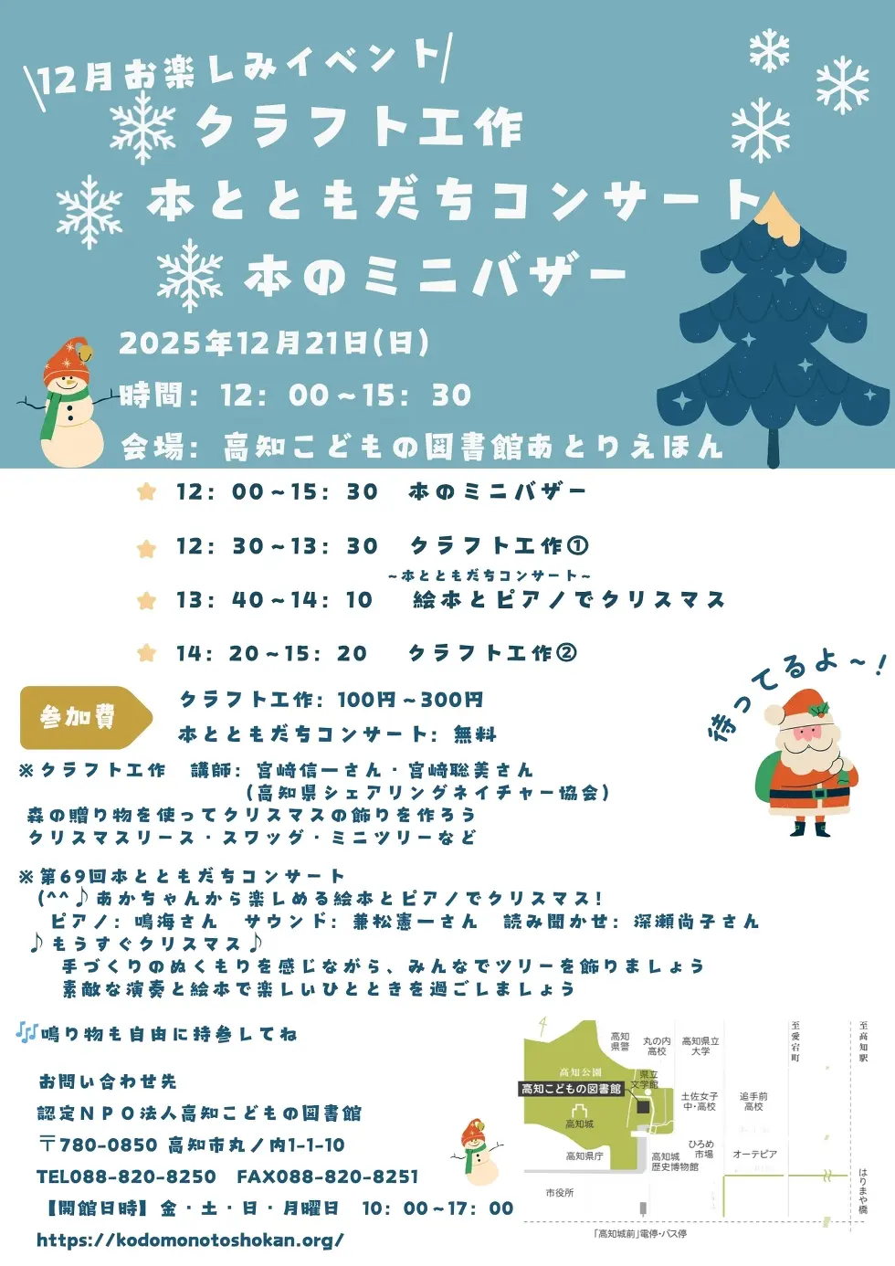 お楽しみイベント・クラフト工作・本とともだちコンサート・本のミニバザー