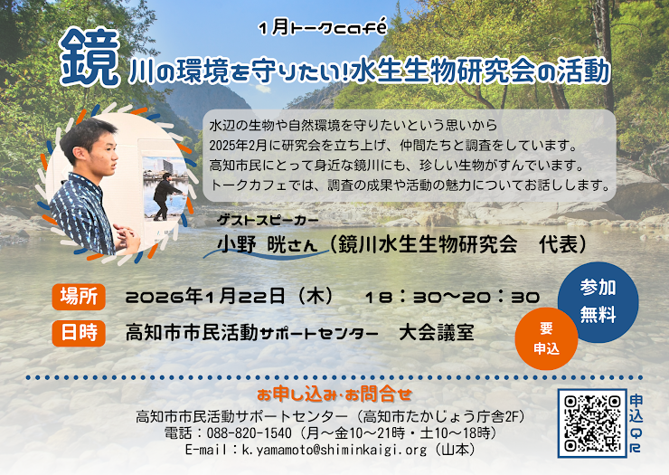 【1月トークcafé】鏡川の環境を守りたい!水生生物研究会の活動